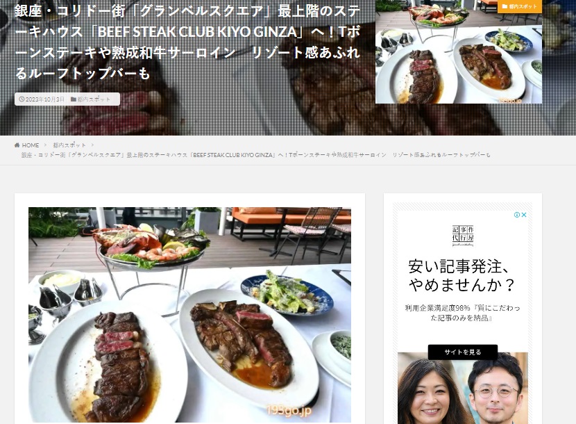 193go-BEEF STEAK CLUB KIYO GINZA 投稿者 imm投稿日:2023-10-032023-11-13 銀座・コリドー街「グランベルスクエア」最上階のステーキハウス「BEEF STEAK CLUB KIYO GINZA」へ!Tボーンステーキや熟成和牛サーロイン リゾート感あふれるルーフトップバーも